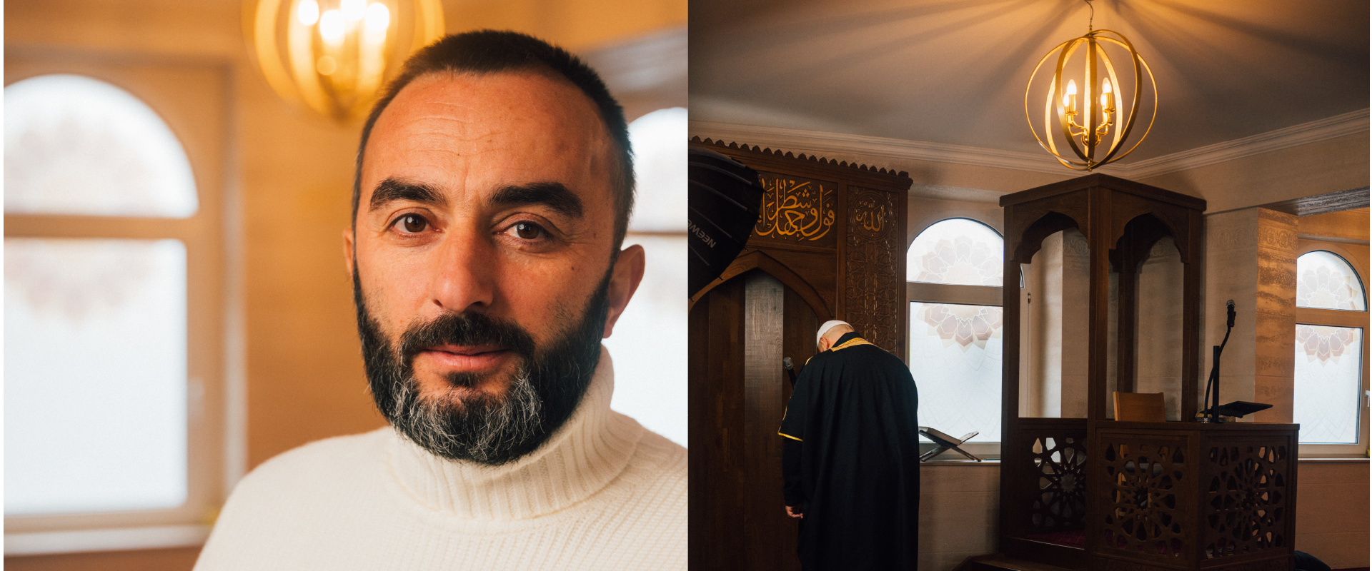 Das spiegelt sich auch in den Speisen wider, die seine Frau und er ihren GĂ€sten anbieten: ÄevapÄiÄi, OvÄavina, Schmand und PogaÄiÄi, das selbstgebackene Brot. Fleisch wird in den tuÌrkischen Metzgereien (halal) gekauft. Das Freitagsgebet findet in der Moschee statt. Sie ist eingerichtet im Erdgeschoss eines Wohnhauses im Leipziger Westen, nach auĂen unsichtbar.