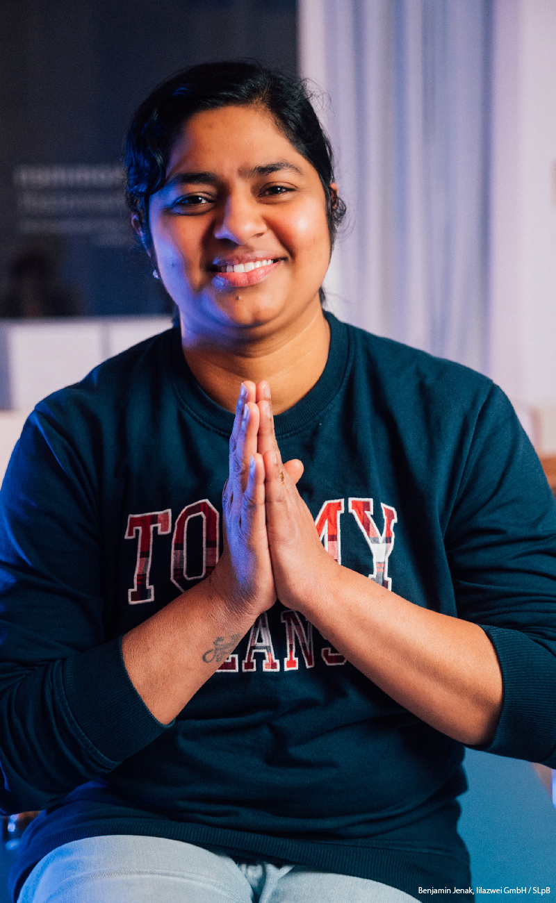 Gethu Muralidharan, Studentin Dresden, ist glÀubige Hindu. Sie faltet die HÀnde zum Gebet. 2023