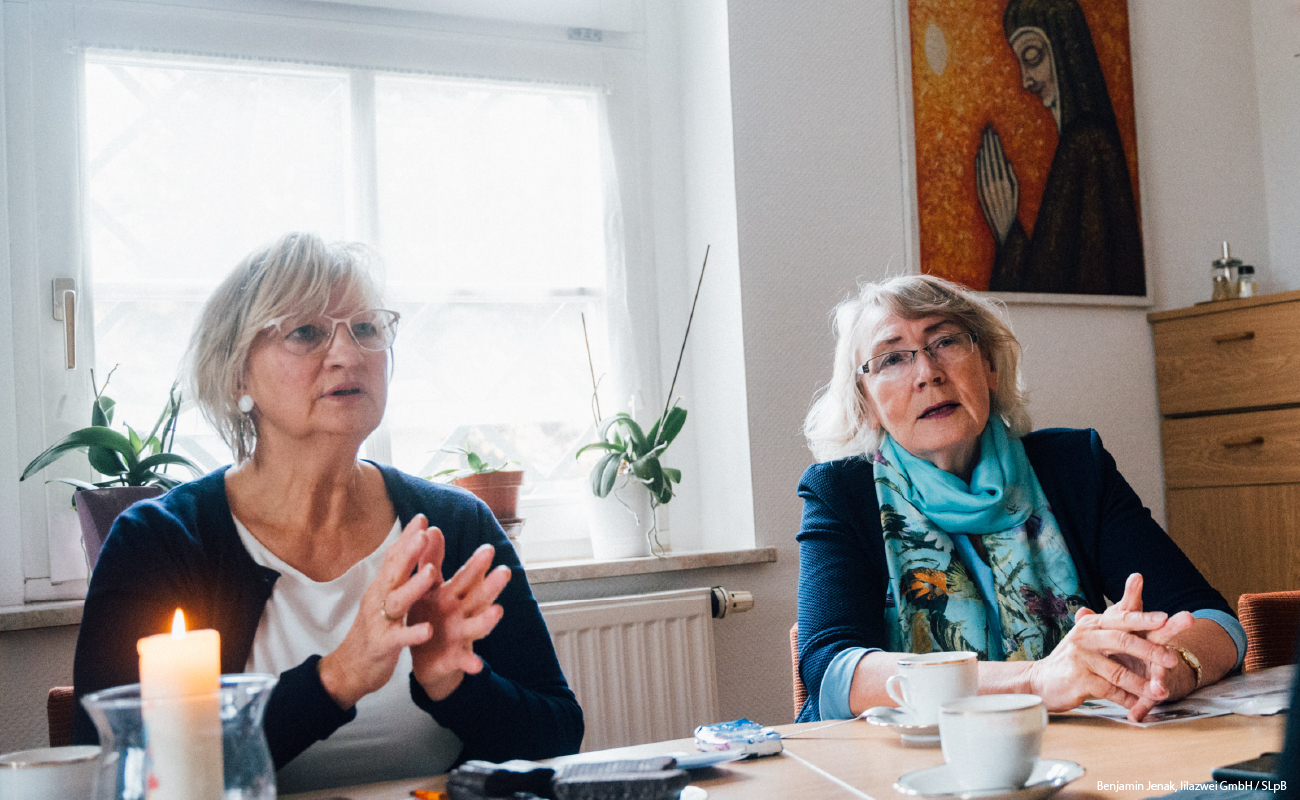 Die Katholikinnen Renata Sichla und Jolanta Rötschke beim Interview mit Dr. Verena Böll, Klarissenkloster Bautzen. 2023
